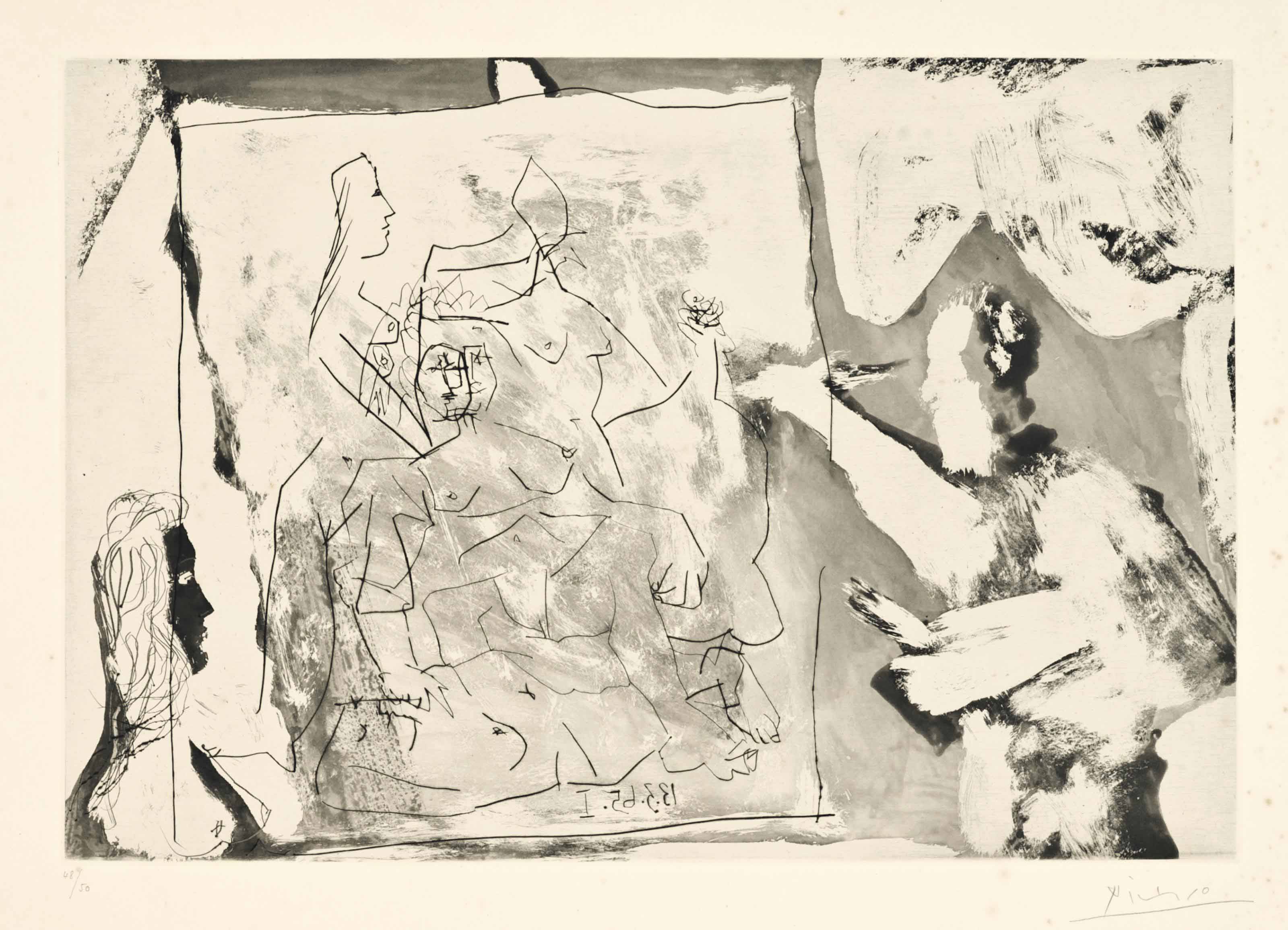 Pablo Picasso (1881-1973) , Dans l'Atelier: toile avec ...